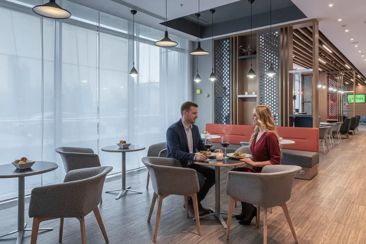 Для гостей доступен горячий завтрак по утрам, а также услуга «Завтрак 24/7», позволяющая выбрать удобное время приёма пищи. Круглосуточный лобби-бар предлагает основное меню, бизнес-ланчи, формат «быстрый ужин», а также безалкогольные и алкогольные напитки.